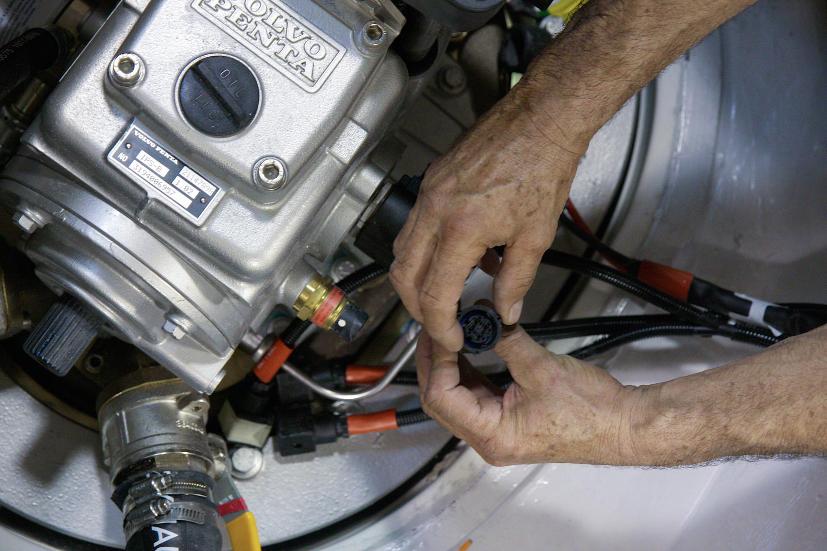 Rigging Motors, the console, electronics, hatches, pumps, plumbing and t-tops are installed.