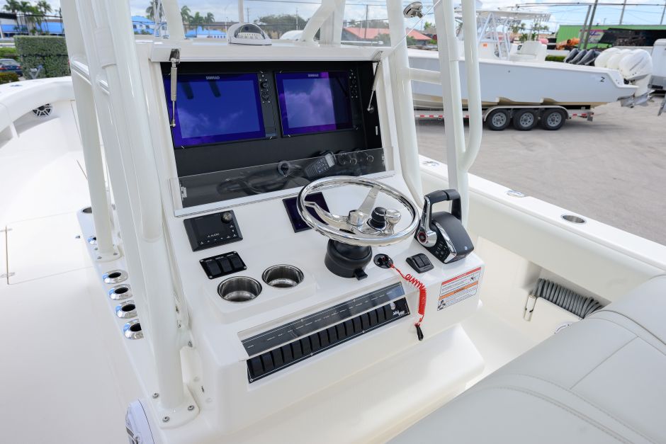Powered by twin Mercury 300 V8 Verado outboards with only 10 hours and factory warranty through August 2029. Equipped with Mercury Joystick Control with Auto Pilot for precise, effortless handling.