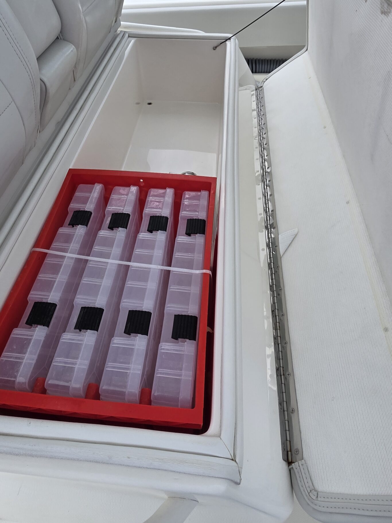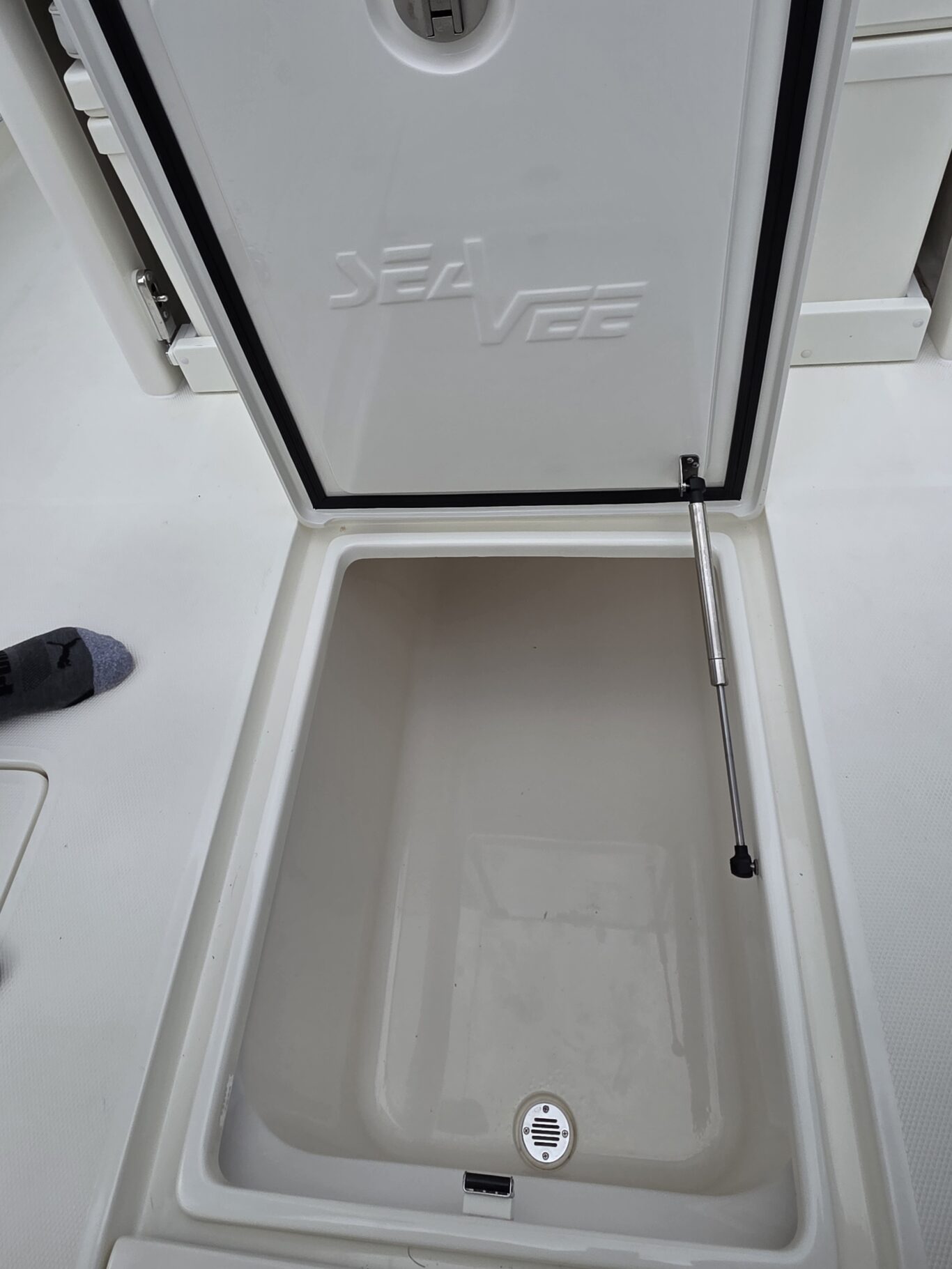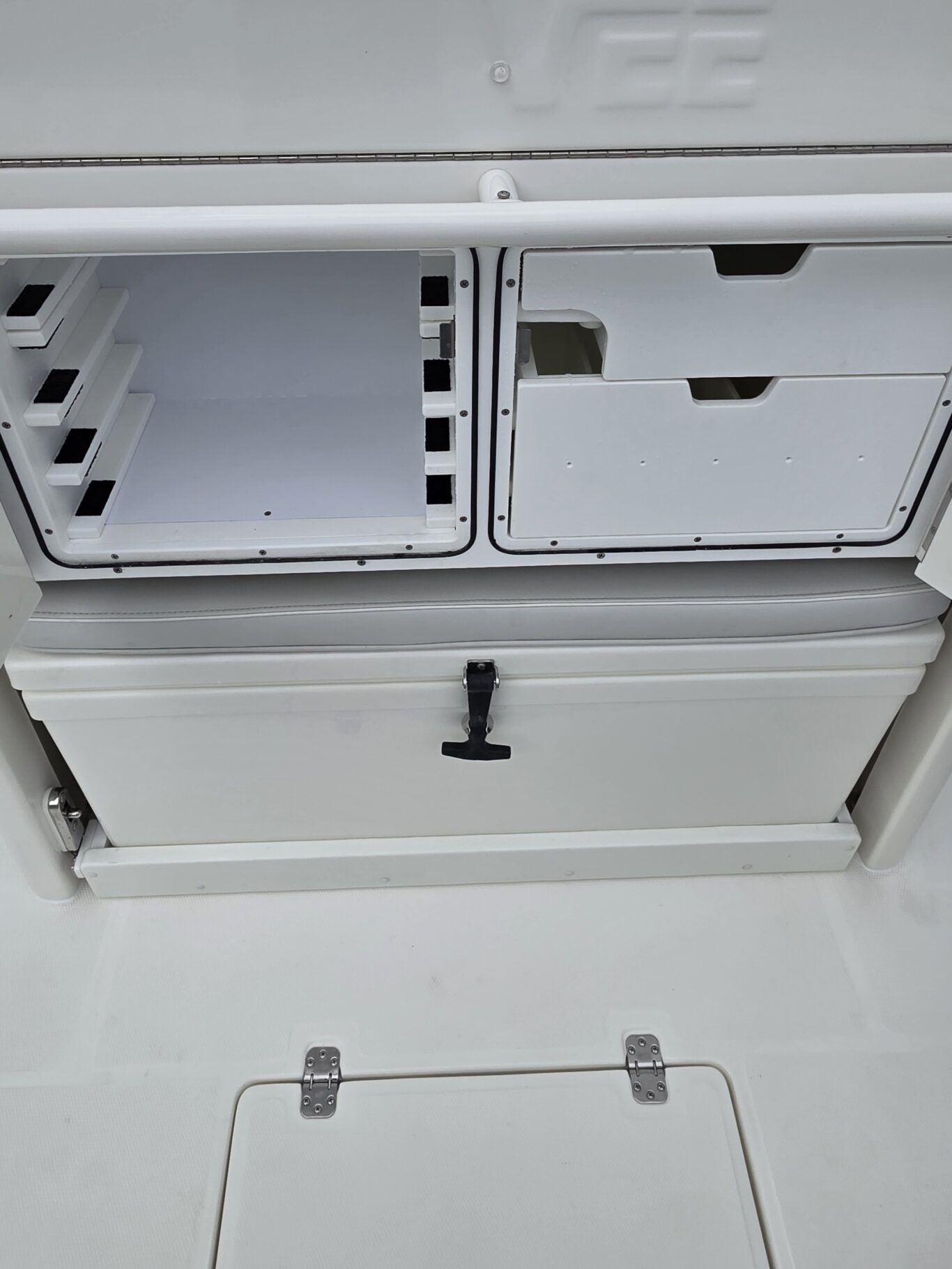 Fiberglass Cooler w/Divider, 145 qt. for Capt.’s Edition Leaner, with Acrylic/Starboard Sliding Cooler Tray