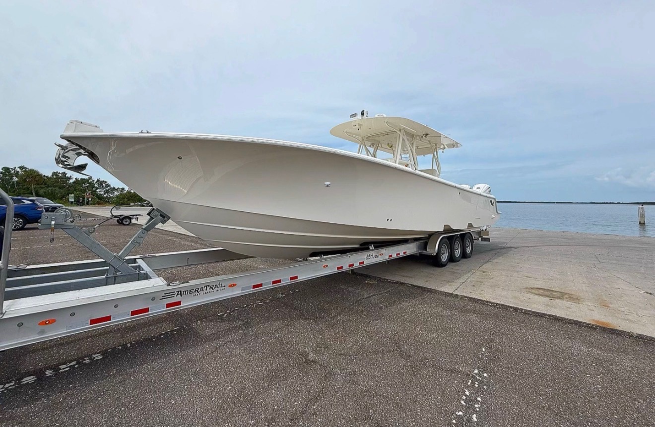 triple engine 30amp battery charger, Fresh and saltwater washdown, dive door, Pneumatic console door, automatic engine flush, Electric head with holding tank and macerator pump out, EZ anchor puller Rebel 5 w/600′ of spectra anchor rode,Rhodan 108′ Trolling motor with 36V Lithium ion battery, electric reel outlets, Gemlux bluewater bases w/18′ carbon fiber poles, L shaped removable lounge seats, forward seating, rear facing seat with cooler, Underwater lights, dual sea chest system for livewell,