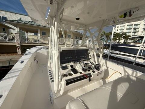 Triple 425 Yamaha’s with 151 hours and warranty until 2031. Boat is very clean and has been stored inside by a knowledgeable owner. XTO Helm Master EX full Maneuverability kit. Yamaha DES to Auto Pilot upgrade.